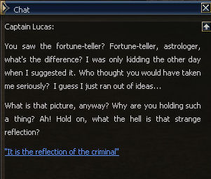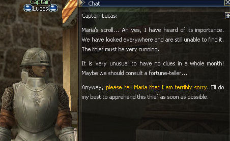 3) Maria sends you to Captain Lucas, who is blessedly still in Dion, since the introduction of the Kamaloka at the central square, not far from the Grocery.