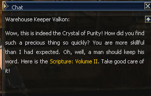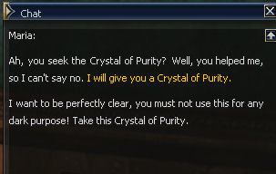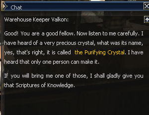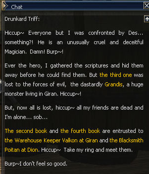 30) In the Town of Giran, Valkon wants the purifying crystal for his book, and that annoying Maria back in the Town of Dion has it. So back to Dion!