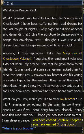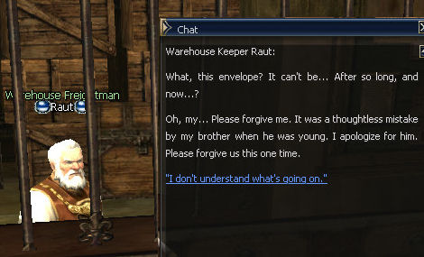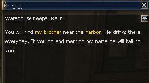 26) In Gludin Village, in the Warehouse, talk to Raut and he tells you to find his brother in the Gludin Harbor.