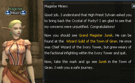 16) Mirien sends you to see Magister Jurek in Giran.