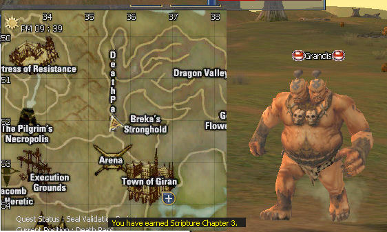 32) In Giran, Valkon gives you his book. Then head up to Death Pass to hunt Grandis to get the third book. After you have that go back to the Wasteland and speak with Casian.