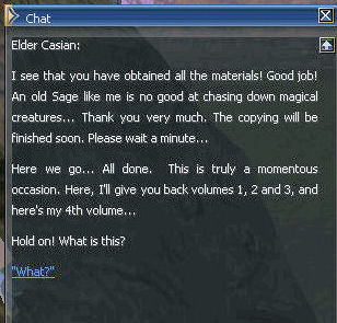 35) Casian gives you the 4th book. Then go back to Hunters Village and talk to Cronos.