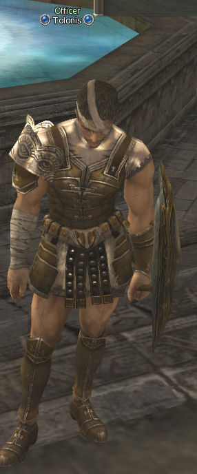 Officer Tolonis is located above Gracia in the Keucereus Alliance Base. He use to be a platoon leader but was injured so he has been given the task of deliveries supplies such as Energy Stones to allies. He can teach Star Stone Gathering to others as well, as long as they have the required Expert Text - Star Stone Extraction Skill. Level 1 (1).